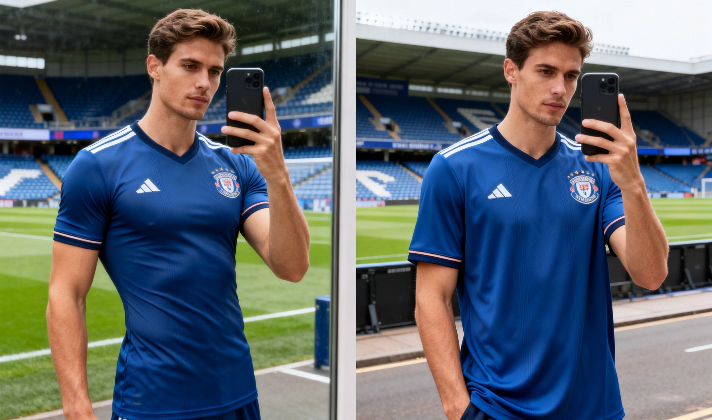 La versión para aficionados tiene un corte más recto y holgado, ofreciendo mayor libertad de movimiento para el cuerpo no deportista y siendo más versátil para el día a día. Es la que ves en las gradas, combinada con chaquetas vaqueras o con bufandas. Es, en esencia, una prenda de streetwear con licencia oficial.